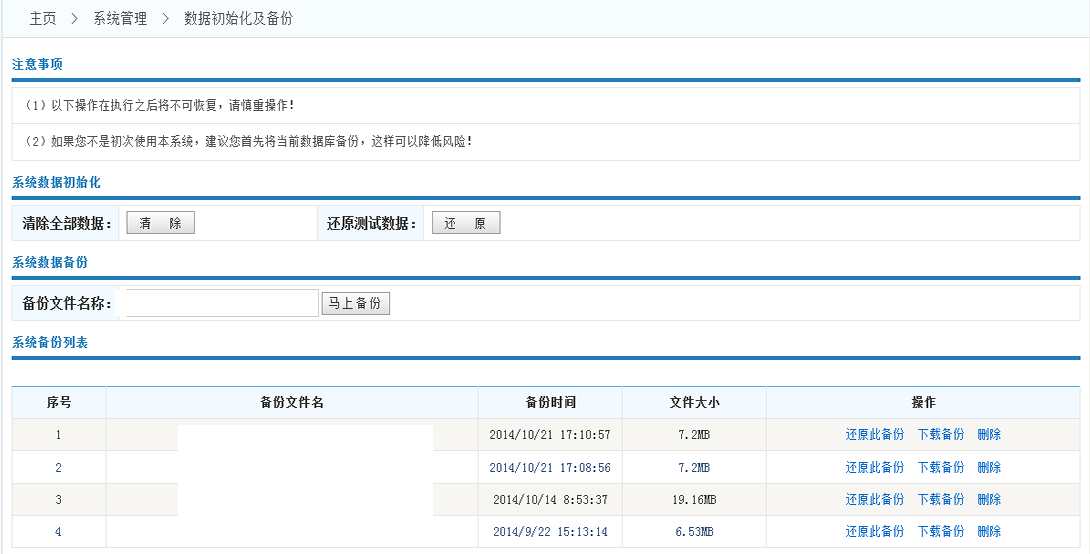 3.系統(tǒng)數(shù)據(jù)備份:在寫入數(shù)據(jù)庫名稱后,點擊馬上備份,備份完成