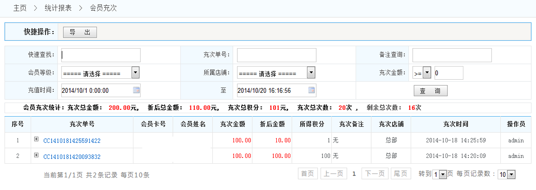充次統(tǒng)計(jì):查看會(huì)員充次記錄