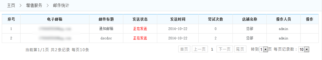 郵件統(tǒng)計(jì): 列表:在郵件列表中的 發(fā)送狀態(tài)一欄會提示發(fā)送的狀態(tài),在發(fā)送次數(shù)一欄 會標(biāo)記發(fā)送次數(shù)(系統(tǒng)會自動發(fā)送5次 直到發(fā)送成功為止,如果5此都不成功則此條郵件發(fā)送失?。?/span>