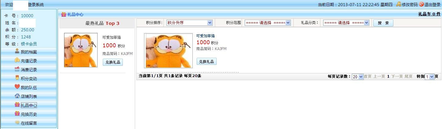 :會(huì)員自助兌換禮品扣除積分