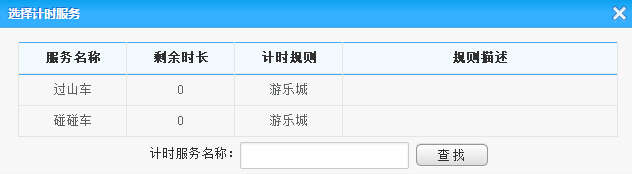 通過刷卡或者是查找定位到會員信息,點(diǎn)擊選擇服務(wù)按鈕將彈出計(jì)時服務(wù)列表框,從其中選擇計(jì)時服務(wù),輸入預(yù)訂消費(fèi)時長后(可選)點(diǎn)擊消費(fèi)開始,便開始計(jì)時消費(fèi),同時計(jì)時消費(fèi)列表也將添加此條消費(fèi)記錄,選擇計(jì)時服務(wù)對話框如下: